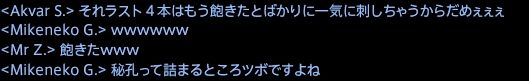 私達、それを見て、参加していたプレイヤーも満たされました。
