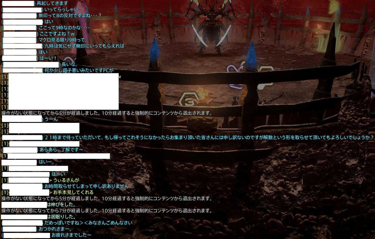 私の装備が壊れた為、途中抜けする。