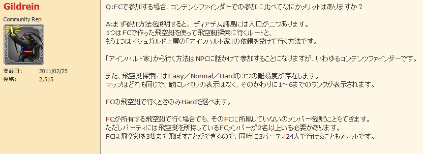 ただしパーティには飛空挺を所持しているFCメンバーが2名以上いる必要があります。