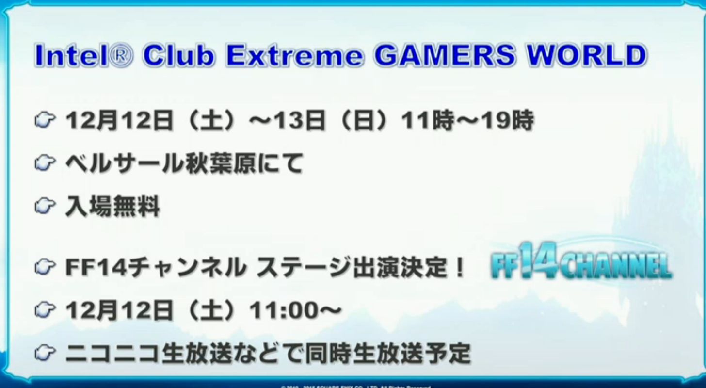FFあんてな: 【FF14】アニーズたちを生で応援するチャンス!Intel Club Extreme GAMERS WORLDにFF14チャンネルが参加!