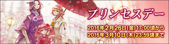もうすぐ「プリンセスデー」の季節がやってきます! 各都市や冒険者居住区には様々な飾り付けが行われ、 すべての女性のための祝祭「プリンセスデー」を彩ります。 季節感あふれる装備品や調度品などもありますので、ぜひお楽しみに! 詳しくは『こちら』をご覧ください。