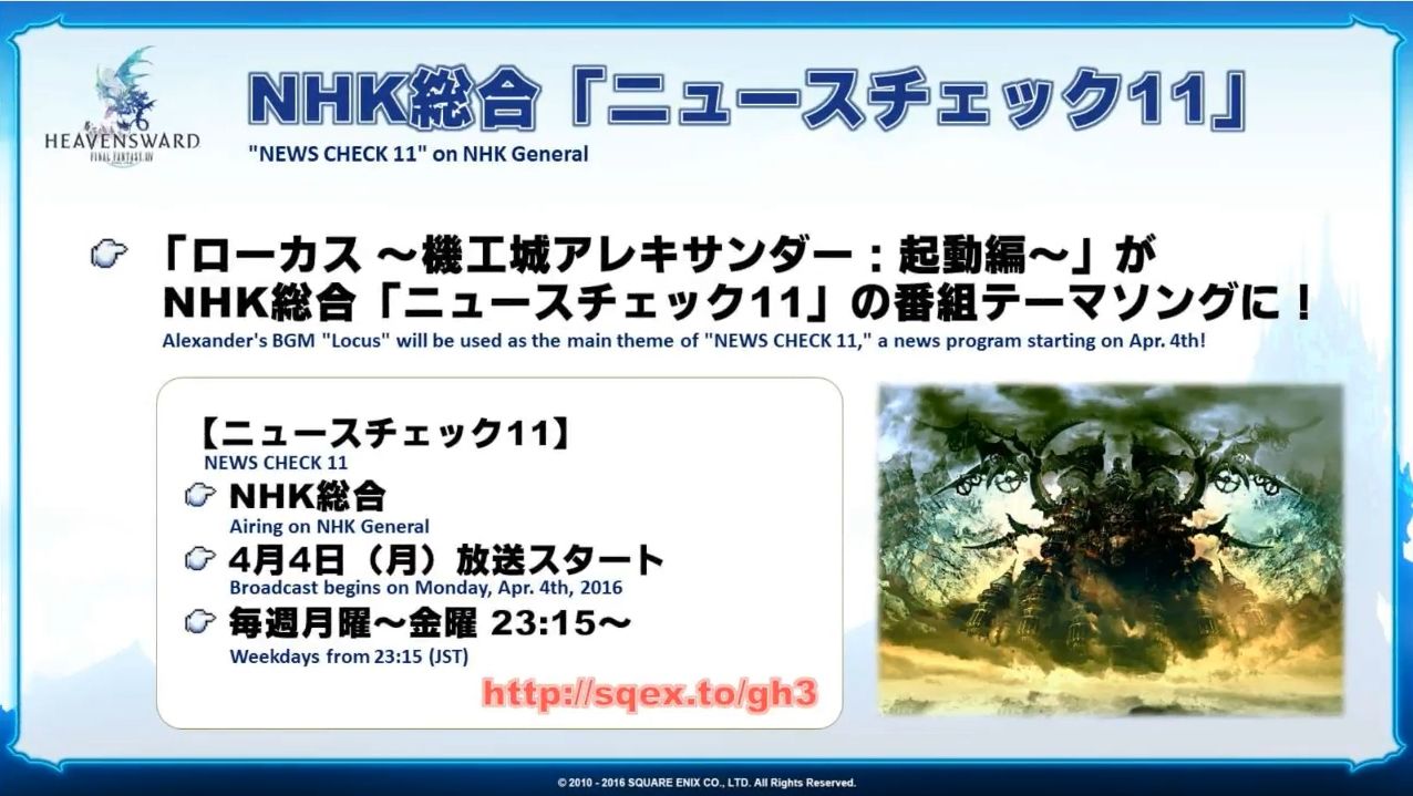 NHKのとあるお偉いさんがテーマ曲どうしようと考えていた所、息子がFF14プレイヤーの光の戦士で、家に帰るとリビングでずっとこれが流れていた。