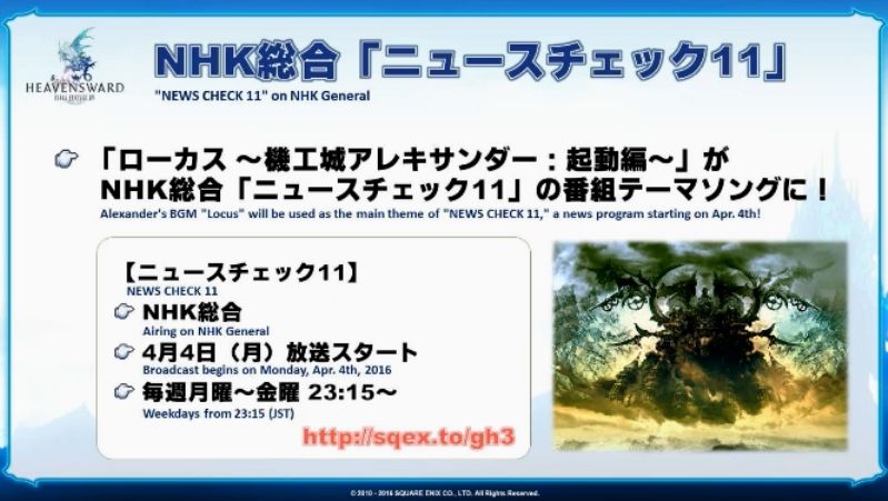 FFあんてな: 【FF14】NHK番組「ニュースチェック11」のテーマソングにアレキ起動編BGMが採用決定wwwwwww