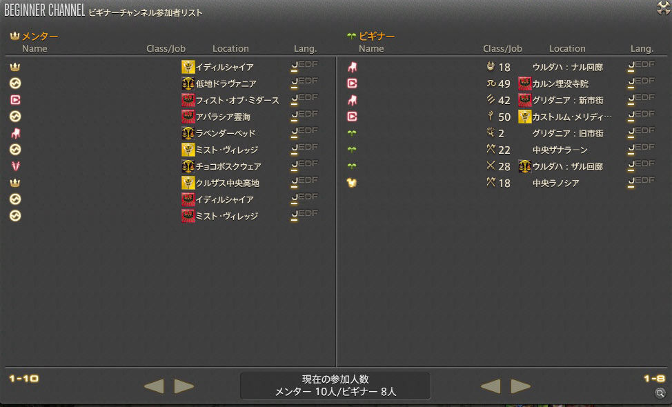 ※パッチ3.25公開後は自動参加設定が解除されていますので、ビギナーチャンネルに参加したいメンターは、