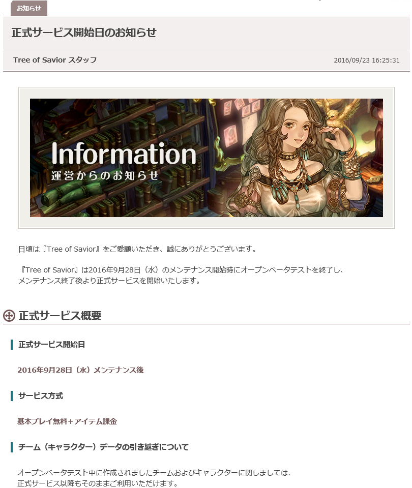 ToS公式より、正式サービス開始のアナウンスがありました。