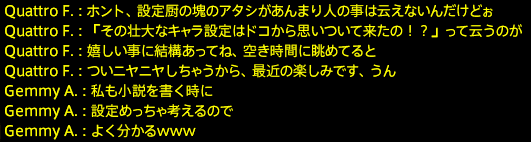 ちなみに、クワトロさんご自身の設定もお聞きしてみました。