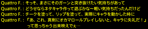本当にご自分のキャラを愛しているクワトロさん。