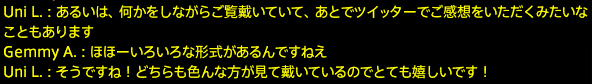 そうです、ユニさんは声を使っての放送ですが……。