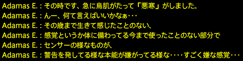 お次はアダマスさんの恐怖体験です!!