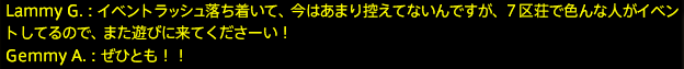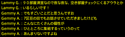 今回は、アトモス鯖の有頂天7区荘ロビーをお借りしました。