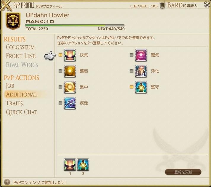 PvPアディショナルアクション、迷ったら入れるのは、快気と堅守だ。
