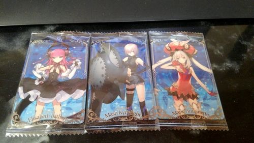 近所のスーパーに、FGOのカード付ウェハースが売ってました。
