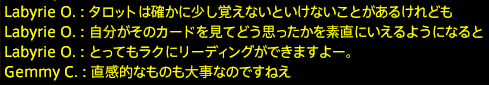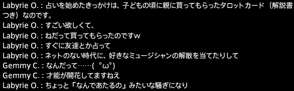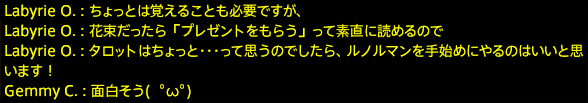 ビブリオマンシーとルノルマンを間違って覚えていたジェミの様子。
