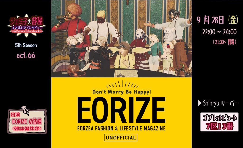 9月28日(金)には、雑誌「EORIZE」の皆様(Twitter)が出演!!