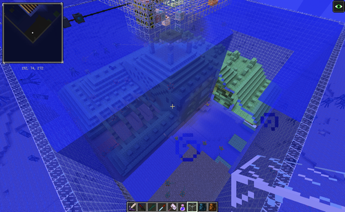 まずはコマンドで海底神殿回りをガラスで覆っていきます。