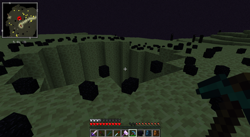 少し気になったので、MineAll mod を使って黒曜石の柱を粉砕してみました。