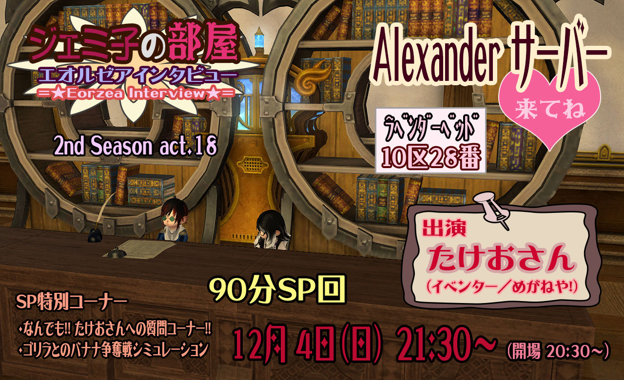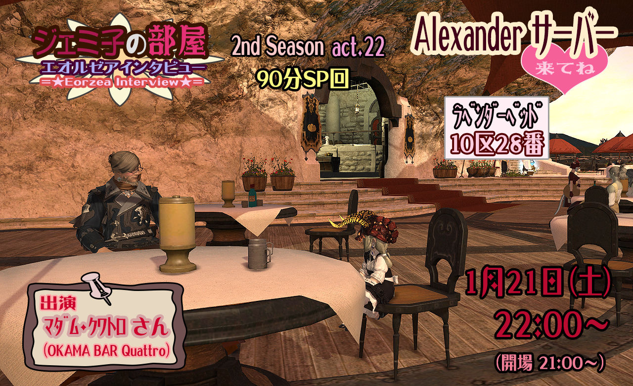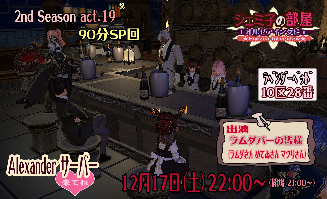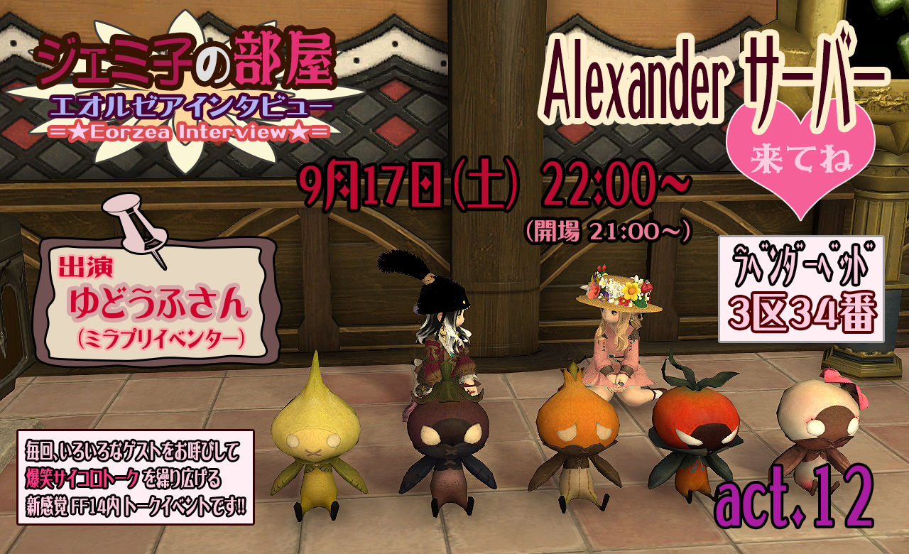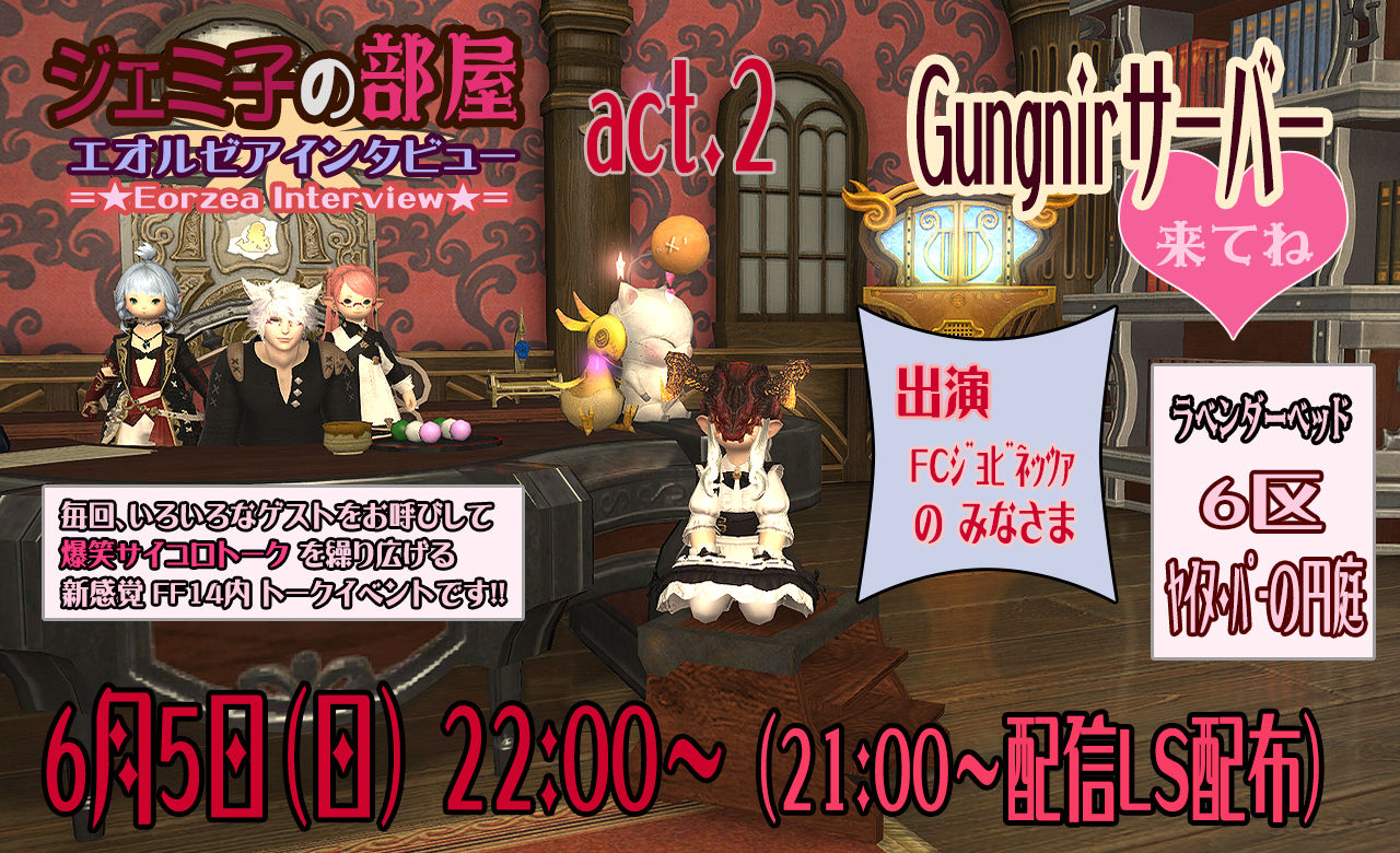 各サーバーでユーザーイベントが活発な昨今、ジェミ部屋もすっかりご長寿イベントとなりましたね。