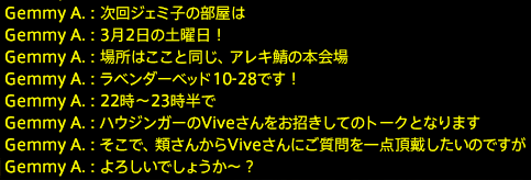 こちらは02/09(土)に執り行われた #ジェミ子の部屋 第78回 ゲスト:類さん(@louistill3) の会場 として提供致しました。