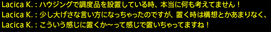 今回は、らしかさんにハウジングをご担当いただきました!!