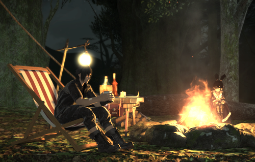 14の主人公(プレイヤー)と15の主人公が焚き火を囲む……。