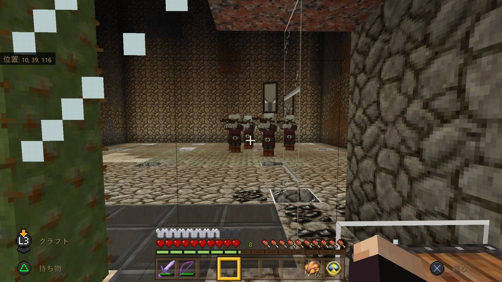 統合版のバグなのか、拠点内に襲撃者の集団が頻繁に湧く……。